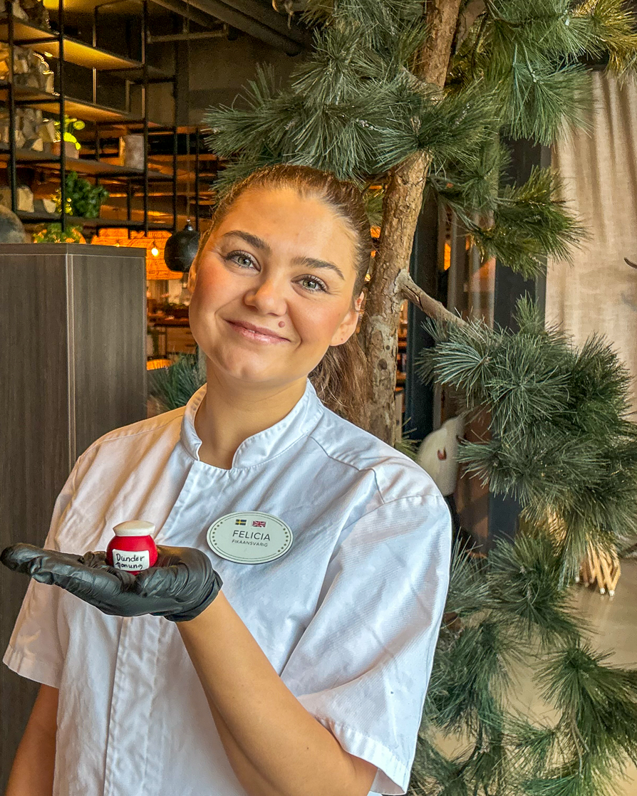 Klockan är fem på morgonen. Det är mörkt ute, men i köket på Vildmarkshotellet har dagen redan börjat. Att få baka och skapa godsaker varje dag låter som en dröm för många. För Felicia är det vardag, men en väldigt rolig sådan! Med en passion för hantverket, ett öga för trender och en kärlek till bra råvaror ser hon till att vårt fikautbud alltid är något utöver det vanliga.
