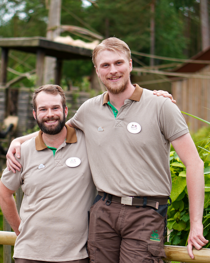 ”Vi älskar den fina gemenskapen bland kollegorna och alla spännande djur. Sen är det härligt att få jobba utomhus under större delen av året. Arbetet är också väldigt varierat beroende på årstid. Dessutom är den stora variationen vi har i vårt arbete ett stort plus, där ingen dag är exakt lika som dagen innan! Det är ett arbete med stort utrymme för att få vara kreativ och själv påverka sitt arbete. Allt från att träna djur till att snickra ihop en berikning eller prata med våra gäster om våra fantastiska djur”, berättar Philip och Mattis.